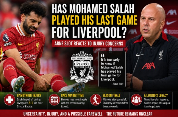 The future of Mohamed Salah at Liverpool FC has suddenly become one of the most discussed topics in football following his recent injury. What was expected to be a routine Premier League match against Crystal Palace turned into a moment of uncertainty, as Salah limped off the pitch with a hamstring issue. With the season nearing its conclusion and Salah already set to leave the club, questions have emerged: has he already played his final game for Liverpool?